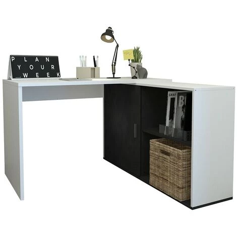 - Bureau d’angle modulable en bureau droit avec Étagères de rangement