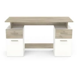 Ce Bureau Double Caisson, Décor Bois et Blanc – L134,8 cm – Platon est un bureau pensé pour un espace de travail optimisé, il est compact et très fonctionnel. Son coloris bicolore neutre s’accorde facilement à tout style de décoration. Il dispose de nombreux espaces de rangement : 2 tiroirs, 2 larges caissons, 2 niches, pour garder l’essentiel à portée de main. Les tiroirs avec serrure permettent de ranger les documents importants en sécurité.