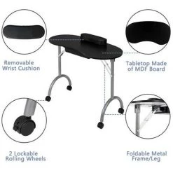 GROSMONDE Table à Clous, Trépied En Fer à Panneau MDF, Avec Roues, Pliable – Noir – Noir