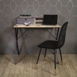 HOME DÉCO FACTORY Bureau 2 Niches 1 Tiroir Cambridge Gris – Naturel Clair – Naturel Et Gris