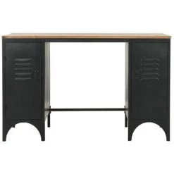 LES TENDANCES Bureau 2 Tiroirs 1 Porte Bois Massif Recyclé Multicolore Et Métal Noir Moust 110 Cm