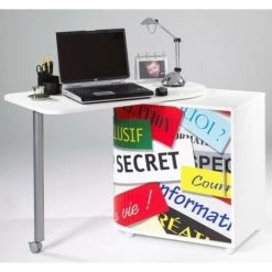 LES TENDANCES Bureau Avec Plateau Pivotant Et Rangement Blanc Imprimé Top Secret Kool 105 Cm