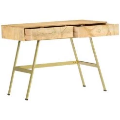 LES TENDANCES Bureau Avec Tabouret 2 étagères Manguier Massif Clair Laqué Et Métal Noir Stracco