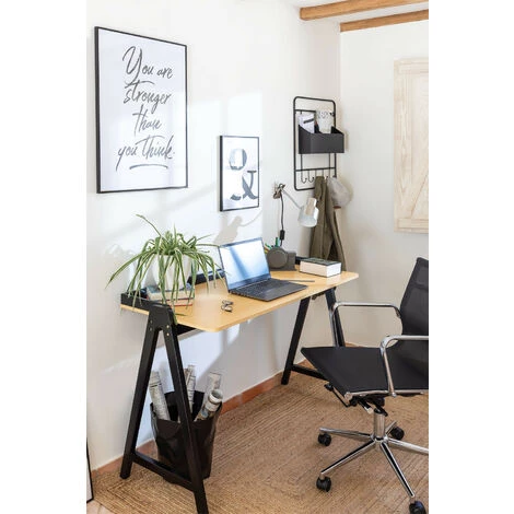 Vous envisagez d’aménager votre bureau ou vous avez besoin d’un bureau sophistiqué ? Le bureau en bois Kailo Style est votre meilleure option. Il se distingue par sa forme caractéristique avec des pieds à tréteaux en bois de pin et un plateau confortable et large en bois MDF. Son design est simple et moderne donnant une touche chaleureuse et personnelle à votre maison. Avec Kailo, vous optimiserez au maximum l’espace, car grâce à ses mesures, il peut s’adapter à tout type de pièce, étant parfait pour les petits espaces. Robuste et résistant, vous pouvez l’intégrer dans n’importe quel style décoratif prédominant. Pour un bon entretien, nous vous recommandons de le nettoyer avec un chiffon humide, en évitant l’utilisation de produits chimiques. Dimensions (Hauteur x Largeur x Profondeur): 80,5 cm x 123,5 cm x 53 cm IMPORTANT : Le service standard porte-à-porte ne comprend pas la livraison et la collecte des marchandises au domicile du client, qui sont à la charge de ce dernier. Il est possible que le livreur aide volontairement à la livraison de la marchandise (ceci est totalement volontaire pour le livreur et la société de transport et ne relève pas de la responsabilité de Sklum).L’assemblage n’est pas non plus inclus.