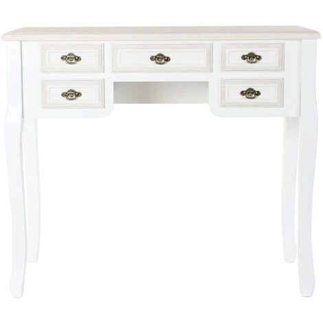 Bureau en MDF coloris blanc de 5 tiroirsDimensions : Longueur 90 x Hauteur 78 x Profondeur 40 cmMatière : MDFCouleur : blanc , naturelPoids : 14 kg