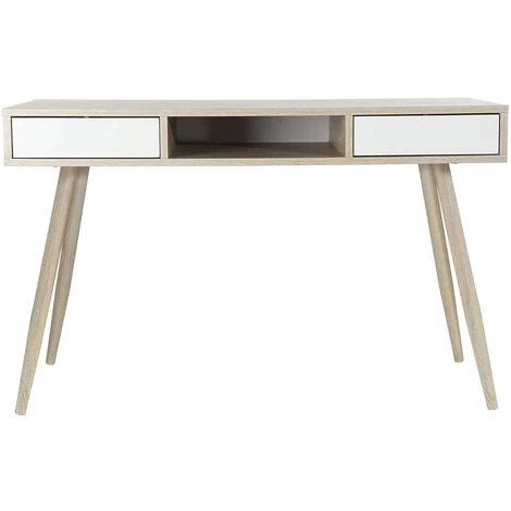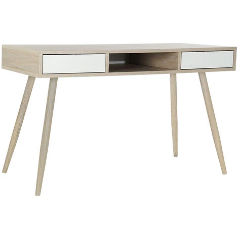 Bureau en MDF naturel / blanc et métal de 2 tiroirs et 1 niche.Dimensions : Longueur 120 x Hauteur 74.5 x Profondeur 60 cmLargeur tiroir : 29.5 cmProfondeur tiroir : 28.5 cmMatière : MDF , métalCouleur : naturel , blancPoids : 33 kg