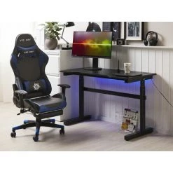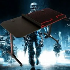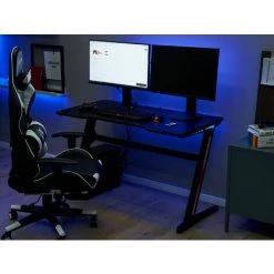 Bureau Gaming Grand 140cm à LED Inclus Tapis Souris Gobelet Support Casque Porte SIRHONA