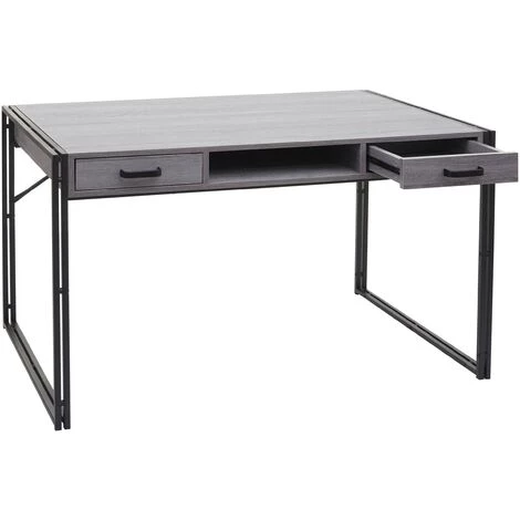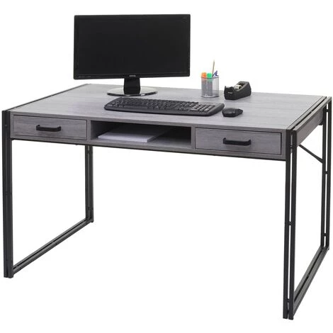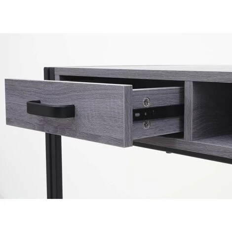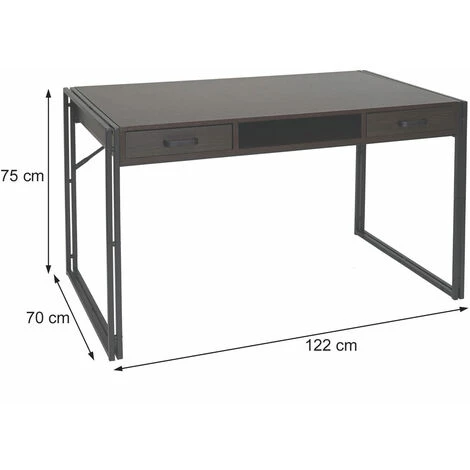 Cette table PC chic au design industriel n’est pas seulement visuellement attrayante. Elle dispose de deux tiroirs et d’un compartiment de rangement. Ceux-ci offrent suffisamment d’espace pour les ustensiles de bureau qui n’ont rien à faire sur la table.