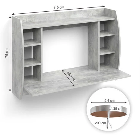 - Notre bureau mural s’intégrera facilement dans n’importe quelle pièce et vous offrira suffisamment d’espace de rangement et de surface de pose pour tous vos articles de bureau ou votre ordinateur portable.