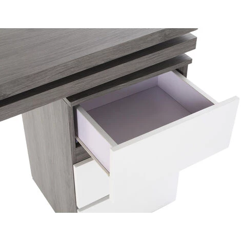 Bureau réversible en MDF coloris gris/ blanc et métal .Dimensions : Longueur 150 x Hauteur 120 x Profondeur 75 cmMatière : MDF , métalCouleur : gris, blancPoids : 15 kg