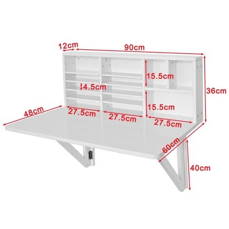 Table murale rabattable avec Etagére intégrée, Armoire murale, Table cuisine pliable, Table de repas, Bureau -Blanc, FWT07-W