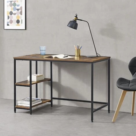 Ce bureau est un poste de travail Ă©quipĂ© d’Ă©tagère vous offrant d’espaces de rangement pratiques pour vos dossiers et livres entre autres. La stabilitĂ© est assurĂ©e par la structure en acier noir de style Ă©purĂ©. Un choix idĂ©al pour meubler les bureaux, mais cette table convient parfaitement aux Ă©lèves Ă la maison Ă©galement.