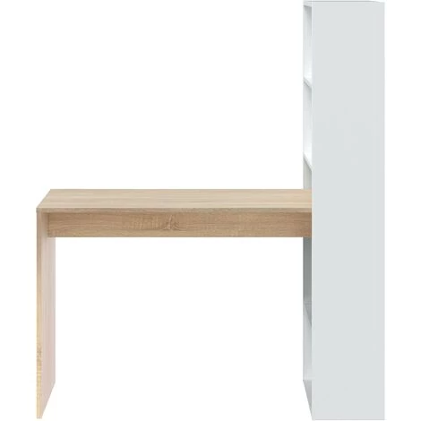 Bureau 120×53 cm Blanc mat et Chêne canadien avec bibliothèque 144 cm