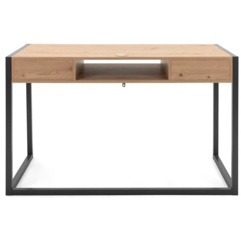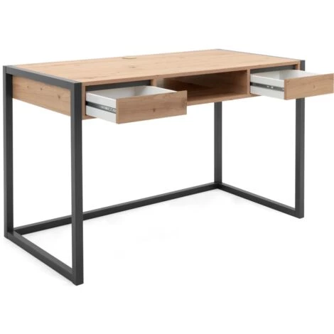 Bureau 120×60 cm Minorca Chêne artisanal et gris anthracite avec deux tiroirs
