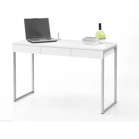 Bureau 126×52 cm laqué blanc avec trois tiroirs et pieds en métal
