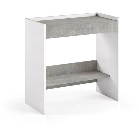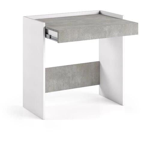 Bureau 80×40 cm en Blanc Frêne et Ciment avec tiroir et étagère