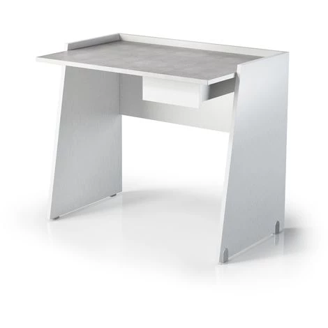 Bureau 90×60 cm Blanc frêne avec un tiroir et une étagère à effet ciment