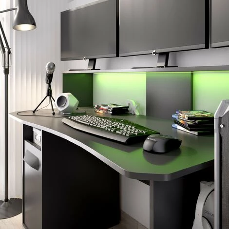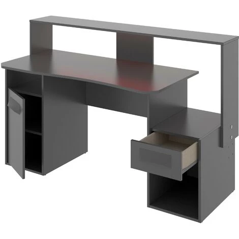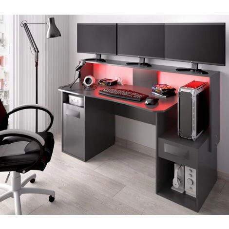 Bureau GAMER PC avec Led couleur Graphite avec porte et tiroir