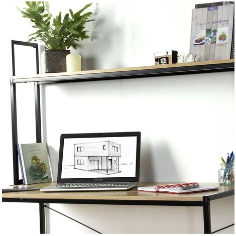 - Ce grand bureau d’une longueur de 120 cm avec 1 étagère vous offrira un superbe espace de travail. Facile d’installation, ce bureau assure résistance et confort et vous garantit une place suffisante pour vos journées de télétravail.