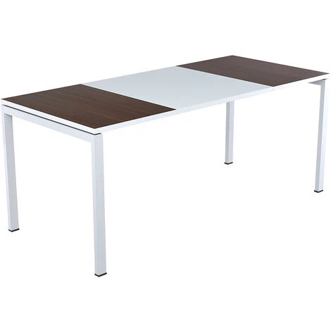 Largeur: 1800 mm, Hauteur: 750 mm, Épaisseur panneau: 25 mm, Prix échelonné à partir de: 1 pièces, Profondeur: 800 mm, Livraison: Démonté, Modèle de piétement: Piétement 4 pieds, Coloris piétement: Blanc, Matériau du piétement: Acier, Matériau: Panneau revêtement résine mélamine, Coloris plateau: Wengé, Matériau plateau de table: Panneau aggloméré