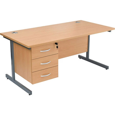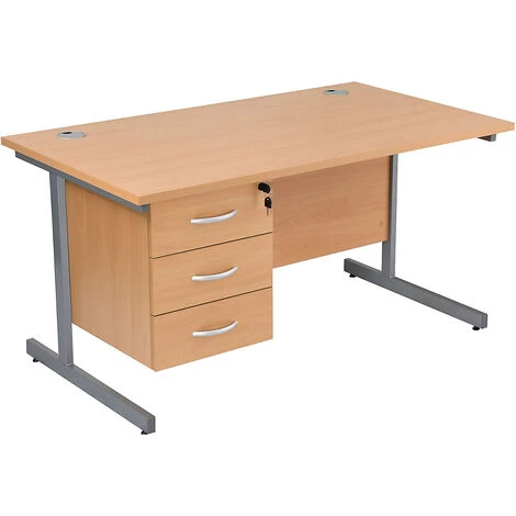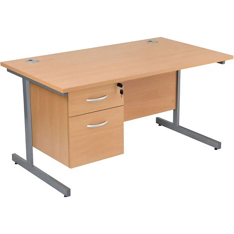 - Bureaux rectangulaires classiques avec piétement en C et un caisson pour offrir un espace de rangement supplémentaire.