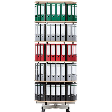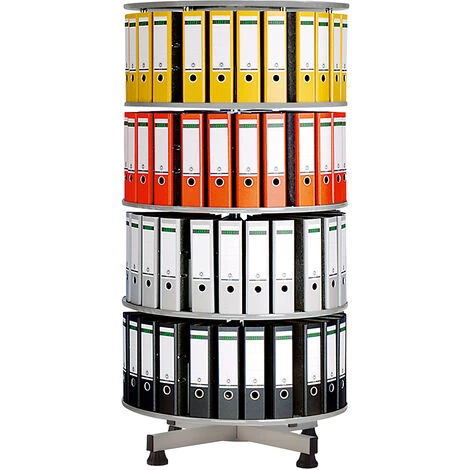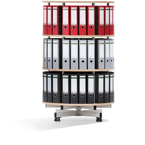 Nombre d’étages: 3, Diamètre: 800 mm, Poids: 43 kg, Hauteur: 1300 mm, Pour nombre de classeurs A4: 72, Charge max. par niveau: 70 kg, Livraison: Démonté, Coloris des étagères: Finition hêtre, Matériau des étagères: Tablette en bois mdf, Coloris: Gris clair RAL 7035, Fonction: Rotatif dans son ensemble, Modèle de piétement: Piétement 4 pieds, Matériau du piétement: acier peint, Coloris plateau: Finition hêtre, Prix par: Pièce