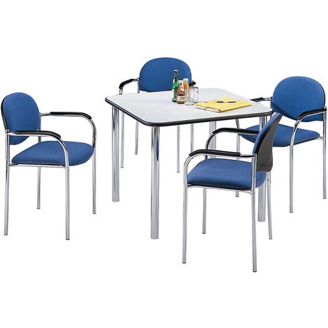 Surface plastifiée résistante aux rayures. Plateau épaisseur 22 mm à chants arrondis.Piétement en tube rond, Ø 50 mm, chromé.Hauteur table 720 mm.
