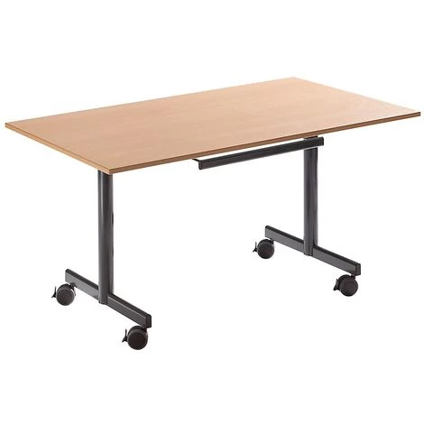 Largeur: 1200 mm, Hauteur: 720 mm, Épaisseur panneau: 19 mm, Prix échelonné à partir de: 1 pièces, Profondeur: 800 mm, Livraison: Démonté, Fonction: Pliable, Modèle de piétement: Tube rond, peint époxy, Ø 60, Coloris piétement: Anthracite, Coloris plateau: Finition hêtre, Prix par: Pièce, Train de roulement: 4 roulettes avec frein