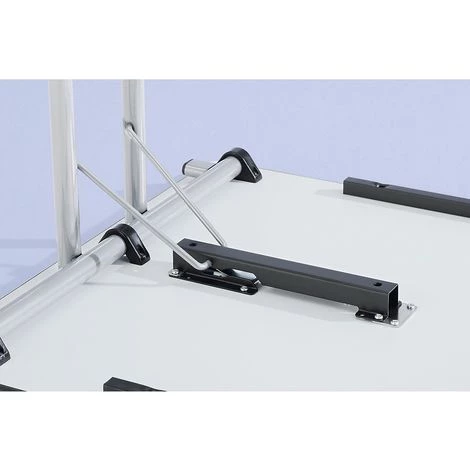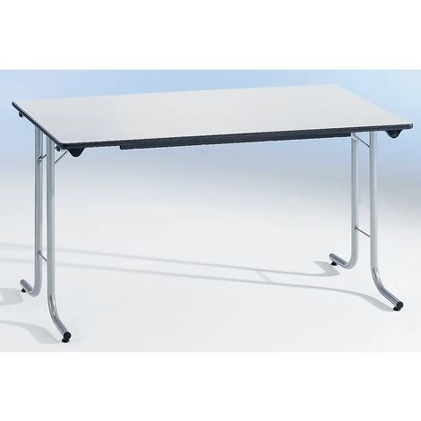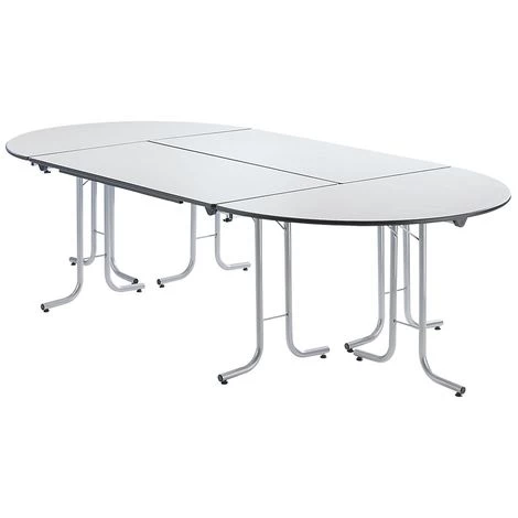 Chants arrondis, plateau en mélaminé épaisseur 19 mm.Chants arrondis avec protection spéciale en plastique dur et mou. Manette permettant la liaison entre plusieurs tables.Piétement en tube rond peint époxy, Ø 30 mm, coloris aluminium ou noir.Butées facilitant l’empilage et blocage de sécurité en position dépliée et repliée.Hauteur 740 mm, hauteur table repliée 10 cm.Livrées montées et repliées.