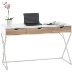 Conçu dans un style unique, comme un croisement entre le style industriel et la tendance scandinave, ce bureau original s’intégrera à tout type d’aménagement. Que ce soit au bureau ou dans le coin de travail à domicile, Ce modèle est conçu dans un mélange harmonieux de matériaux de haute qualité, le MDF pour le plateau et les tiroirs et les tubes d’acier laqués pour le support. La table de travail Ternitz est dotée de 3 tiroirs spacieux pour vos objets et autres accessoires de travail. Le support est, quant à lui, muni de patins de protection de sol.
