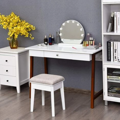 - 【Grand plan de travail et espace de rangement】cette table a une grande surface de travail, ce qui vous rend très à l’aise lorsque vous travaillez dessus et rend votre travail plus efficace. En même temps, elle a un grand tiroir. Lorsque vous vous maquillez ou travaillez, vous pouvez mettre des cosmétiques ou des livres dans le tiroir sans avoir à vous soucier du désordre. Gardez l’environnement propre et confortable est propice à la santé physique et mentale.
