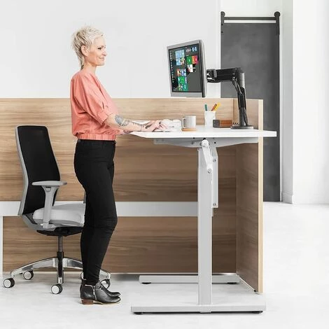 - 【Santé et confort lorsqu’on change de position:】Le bureau réglable en hauteur vous incite à prendre une bonne habitude d’assise et de station debout. Il permet de protéger votre colonne vertébrale, de favoriser la circulation sanguine, de réduire les douleurs dorsales et cervicales ce qui améliore la concentration et l’efficacité au travail.