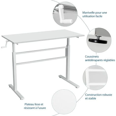 - 【Bureau assis-debout avec manivelle:】Ce bureau est conçu avec une manivelle pliable pour éviter les chocs. Elle peut être installée à gauche ou à droite selon vos habitudes. Vous pouvez simplement tourner la manivelle pour régler la hauteur du bureau de 75 cm à 113 cm, facilement et sans bruit.