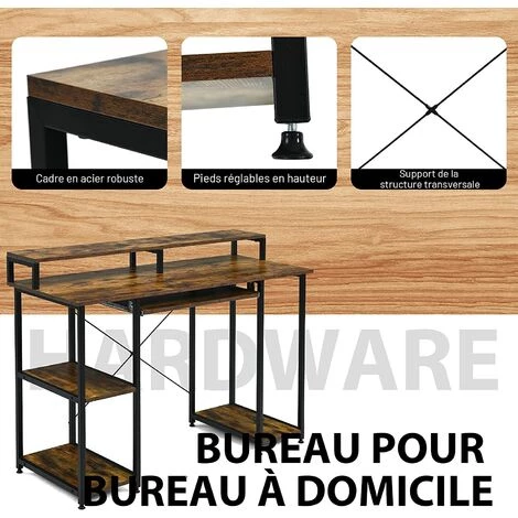 - 【Rangement spacieux :】le bureau comprend des étagères ouvertes à 2 niveaux, un support pour unité centrale, un support d’écran et un plateau de clavier qui offrent un grand espace de rangement pour votre travail quotidien et vos études. Vos documents, livres ou objets décoratifs sont toujours à portée de main.