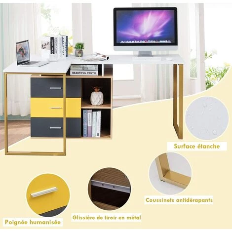 - Caractéristiques: Bureau d’angle, Avec tiroir(s)