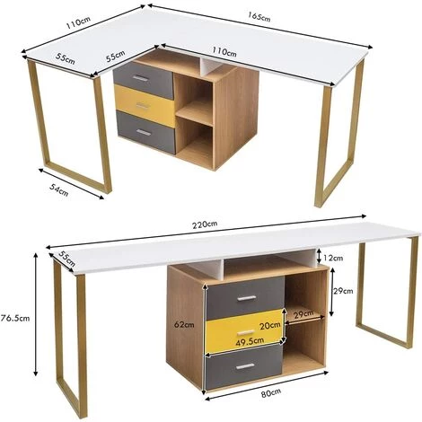 - 【Bureau partagé à deux:】ce bureau de 220 cm de long permet à deux personnes de travailler en même temps. Vous pouvez partager le même espace de travail et travailler côte à côte avec vos amis ou membres de votre famille. En outre, il peut être assemblé en L pour se placer parfaitement dans un angle, permettant d’utiliser au mieux l’espace limité.