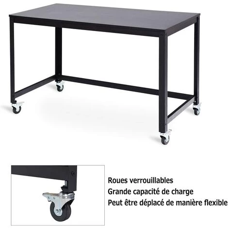 【Table spacieux et roues lisses】La table est assez large avec beaucoup d’espace pour mettre de nombreuses fournitures de travail, telles qu’un ordinateur, des livres, une lampe, etc. Les 4 roues lisses facilitent le déplacement.