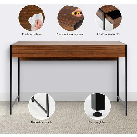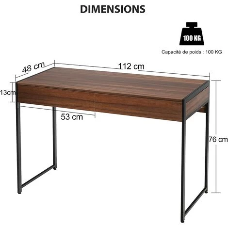 - Beaucoup d’espace de stockage: Le bureau de 112 cm x 48 cm est suffisamment spacieux pour y ranger votre ordinateur, livres, plantes et autres articles de bureau. La table dispose également de deux grands tiroirs dans lesquels vous pouvez conserver les documents importants en toute sécurité. Les rails métalliques les rendent faciles à ouvrir et à fermer.