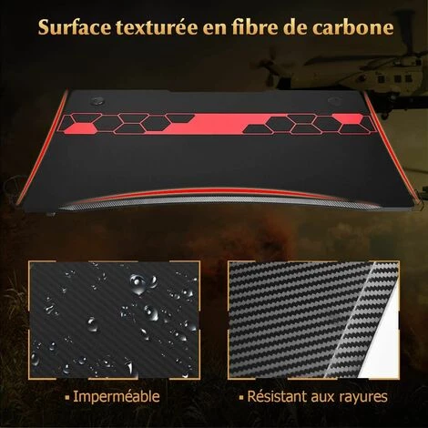 - 【Surface de jeu spacieuse】: Le bureau mesure 115 cm X 66 cm, il est conçu pour offrir suffisamment d’espace pour que les joueurs puissent placer divers équipements de jeu. En outre, la surface en fibre de carbone est plus résistante et plus confortable au toucher.