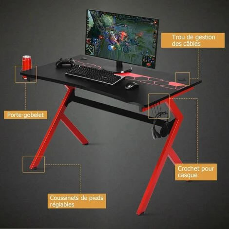 - 【Accessoires pratiques】 : Il y a un crochet pour casque et un porte-gobelet, vous permettant de placer le casque et le gobelet près de vous, pour un accès rapide et facile. De plus, deux trous pour la gestion des câbles permettent de mieux les organiser.