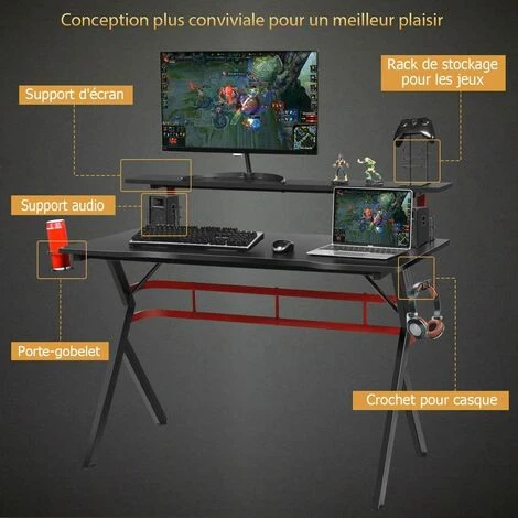 - 【Conception pratique:】Équipé d’un porte-gobelet, d’une prise pour casque, d’un support pour poignée de jeu et de deux supports audios, le bureau de jeu vous permet de vivre une meilleure expérience de jeu.