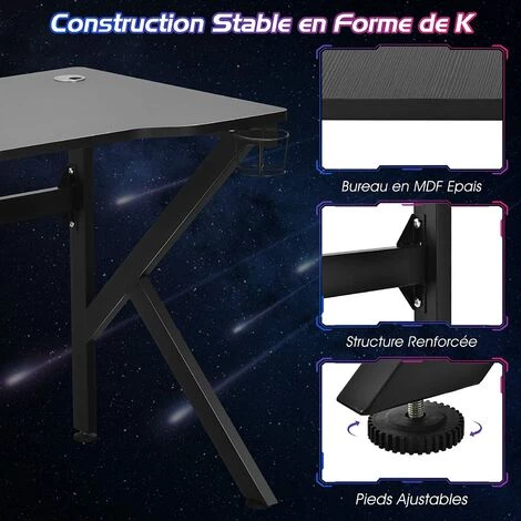 - 【Bureau spacieux et design ergonomique :】ce bureau de jeu dispose d’un plateau de 110 cm x 60 cm, suffisamment large pour placer vos écrans, claviers et autres équipements de jeu. De plus, le plateau est conçu dans une forme incurvée ergonomique, qui s’adapte parfaitement à votre posture assise et est plus esthétique que le rectangle traditionnel.