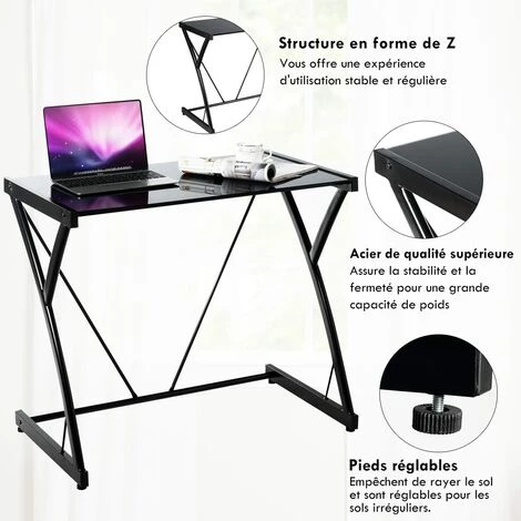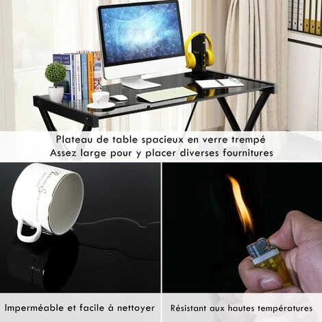 - 【Verre trempé épais et spacieux :】Fabriqué en verre trempé épais, le plateau est résistant à la chaleur et très solide, offrant un bon appui pour vos objets. Il sera utile pour poser un ordinateur portable ou ordinateur de bureau et des fournitures diverses.