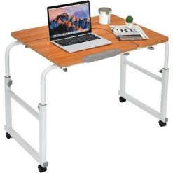 - 【Structure robuste et roulettes verrouillables:】Le cadre en acier solide et le bois composite durable confèrent au bureau un maximum de stabilité, tout en assurant une utilisation pérenne. La table est équipée de roulettes flexibles pour une mobilité facile, permettant un déplacement pratique et silencieux sur différents sols. Les freins facilitent l’immobilisation du bureau.