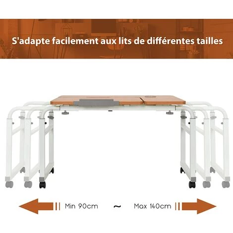 - 【Réglage en hauteur et en longueur :】La table est réglable en hauteur et extensible en longueur, pour répondre aux besoins de différents utilisateurs. La hauteur peut être modifiée de 56 cm à 85 cm. En outre, la longueur est comprise entre 90 cm et 140 cm pour s’adapter sans peine à différentes tailles de lits.