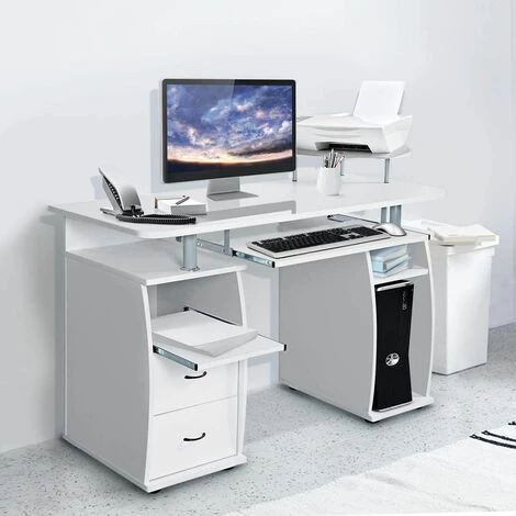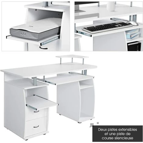 - 【Meuble de bureau pratique】Cette table de bureau pour l’ordinateur est équipée d’une tablette coulissante pour clavier et d’une tablette imprimante qui facilitent votre travail quotidien.