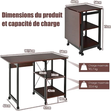 - 【Style moderne et liberté de mouvement :】Le bureau pliable est à la fois élégant et fonctionnel, idéal pour la maison et le bureau. Son style industriel s’intègre parfaitement à la décoration de votre pièce. De plus, grâce à ses 6 roues universelles (dont 3 verrouillables), ce bureau peut être facilement déplacé.