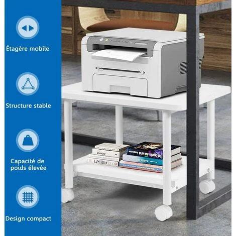 【Roulettes pivotantes à 360 ° pour la mobilité :】Équipé de roulettes pivotantes à 360 °, le support d’imprimante peut se déplacer de manière flexible afin que vous puissiez le transporter partout avec vous. Avec des freins, les 2 roues sont verrouillables pour maintenir le support de l’imprimante en position.