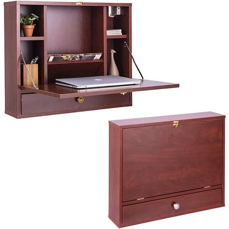 Ce n’est pas seulement un bureau pour ordinateur portable, mais aussi un meuble de rangement. Équipé de compartiments, d’un plateau pour ordinateur portable et d’un tiroir, il vous offre un grand espace de rangement pour ranger votre ordinateur portable, vos livres, vos cadres photo et d’autres objets que vous pourriez avoir. En outre, fabriqué en panneaux de particules et MDF avec une surface en mélamine, il est facile à nettoyer et à entretenir. Plus important encore, la conception murale et la conception pliable permettent de gagner beaucoup d’espace.