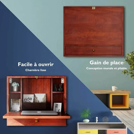 Table murale multifonction, large application comme bureau d’ordinateur portable et armoire